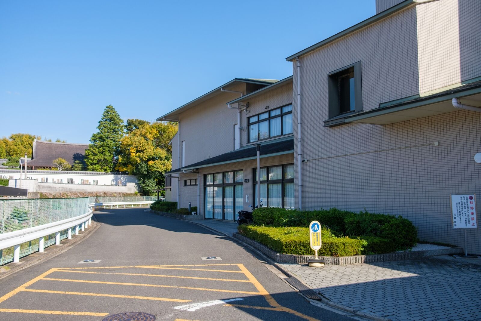 Dedicated bicycle parking for visitors is next to the southeast car park. It's on the side of the Hanazono Kaikan hotel (operated by Myoshin-ji). It's also used for motorbikes. If you can't find it, the staff at the car park will be happy to point you in the right direction.